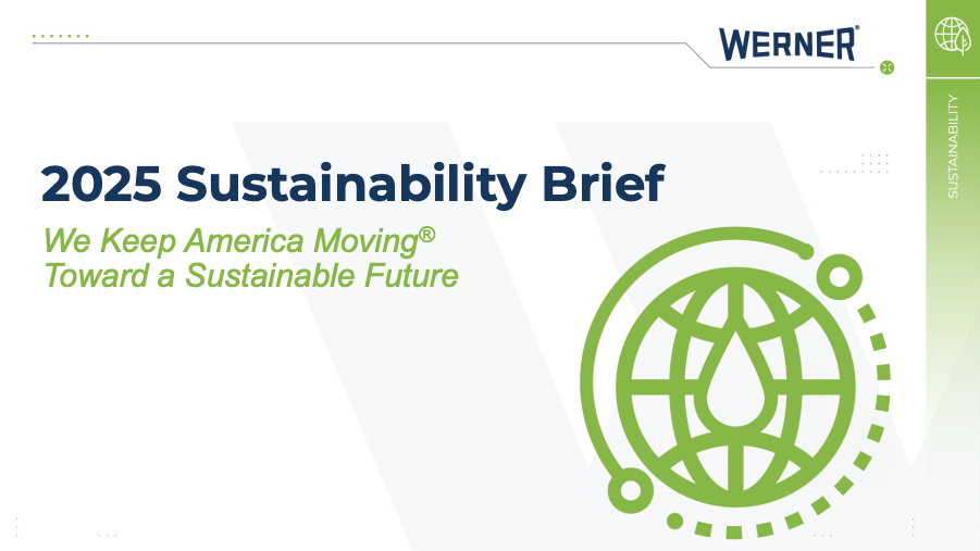 At Werner, we are proud of the strong foundation of driving greater sustainability and inclusion throughout the more than 65 years of our organization. Our Environmental, Social and Governance (ESG) initiatives help us better communicate successes and progress to associates, customers, shareholders, suppliers and the general public and help us identify new areas of focus for further improvement.